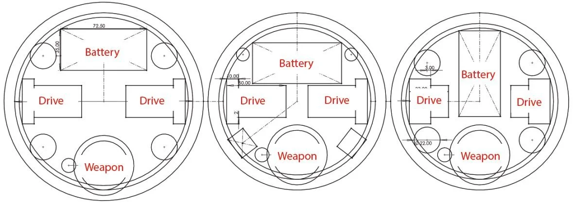 Despite my best attemps, I struggled with the volumetric constraint throughout the design. Ultimately, the battery didn’t have vertical space for any armor, and there wasn’t much room for electronics.